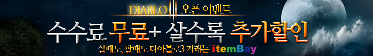 - 이벤트 1: 아이템베이 모든 회원은 디아블로3 거래 수수료 무료! (6월7일 수수료 무료 혜택 종료)