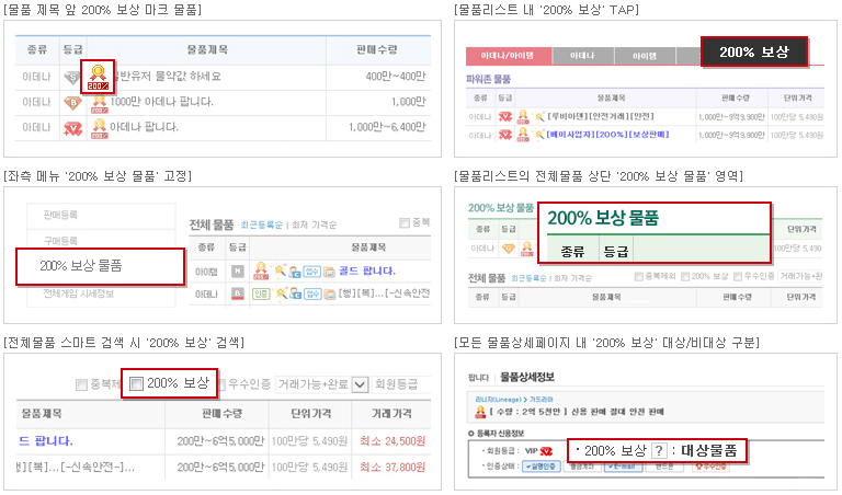 - 물품 리스트 및 물품 상세 페이지 내 200% 보상 물품의 노출 효과 강조