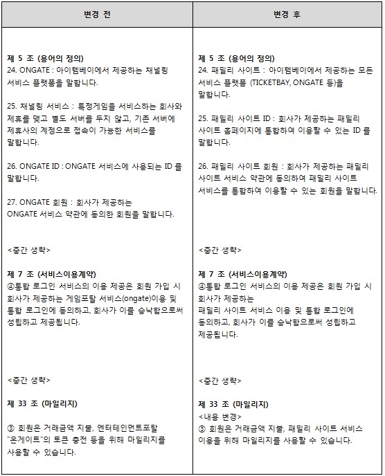 개정 내용은 아래 내용과 같으며, 변경 된 아이템베이 이용약관과 개인정보 취급방침은